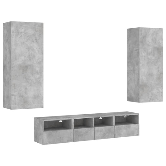 4-tlg. Wohnwand Betongrau Holzwerkstoff