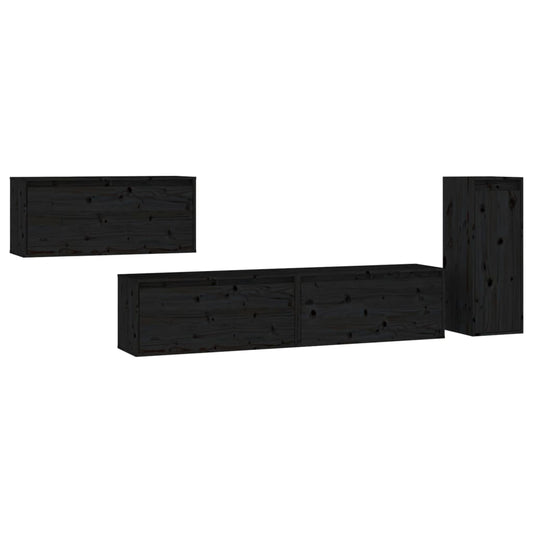 TV-Schränke 5 Stk. Schwarz Massivholz Kiefer