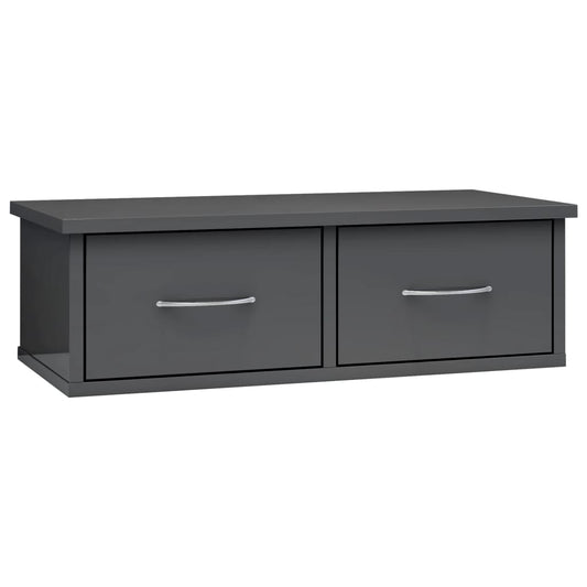 Wall-mounted drawer shelf high-gloss grey 60x26x18.5 cm wood material