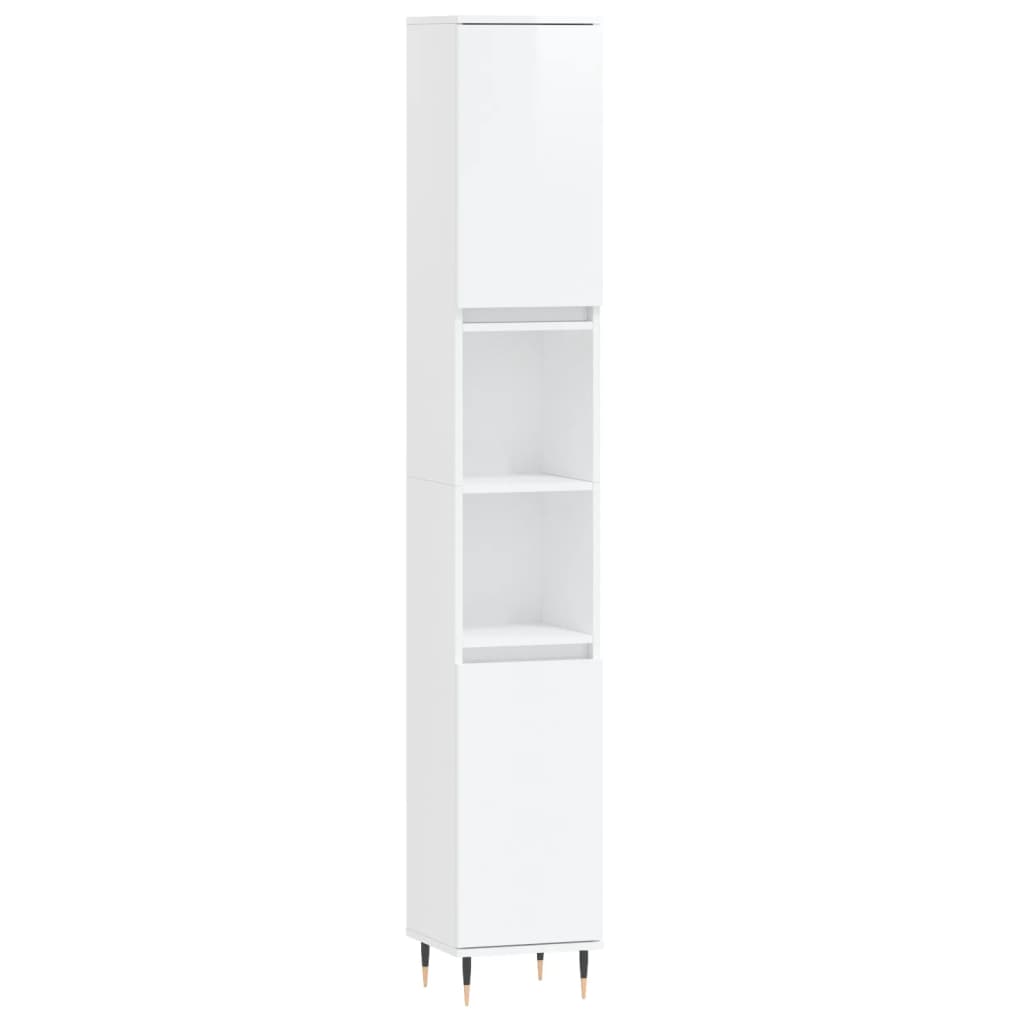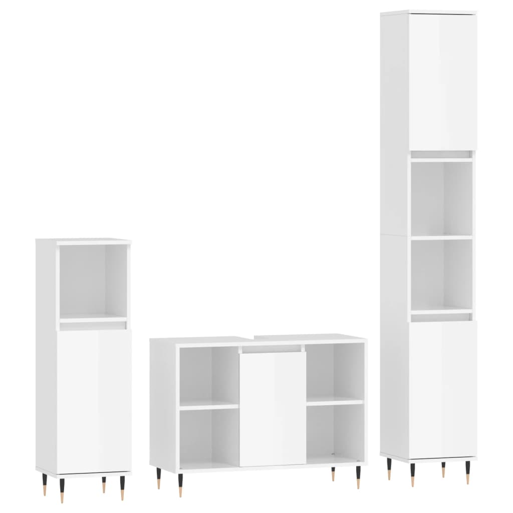 3-tlg. Badmöbel-Set Hochglanz-Weiß Holzwerkstoff