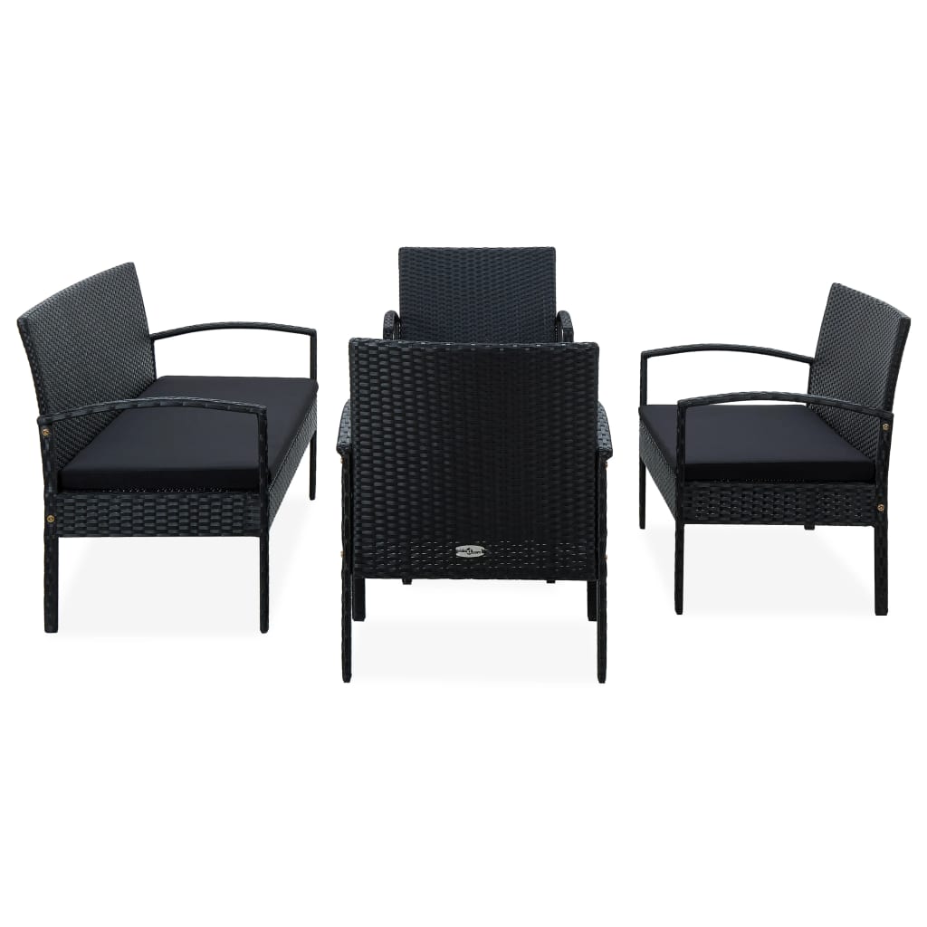 5-tlg. Garten-Lounge-Set mit Auflagen Poly Rattan Schwarz