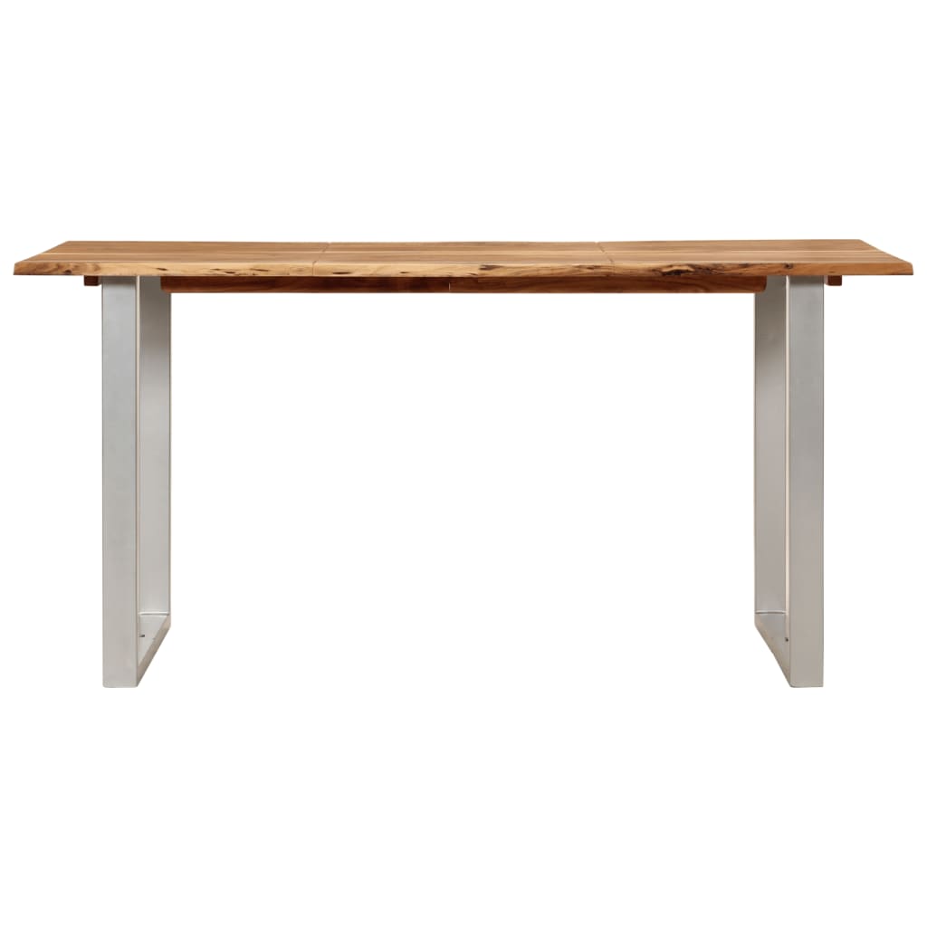 This industrial and rustic style dining table will be a distinctive addition to your kitchen or dining room. This dining table is made of solid acacia wood, a tropical hardwood valued for its robustness and rich grain. The vibrant shape and edges of the tabletop are deliberately finished so that the original character and natural impression of the tree is brought into your interior design! Every step of the manufacturing process is carried out with the utmost care, be it polishing, painting or varnishing. The steel legs complete the industrial look and contribute to the robust construction. The dining table is easy to assemble. Important note: The colors and edges vary from piece to piece, making each piece of furniture unique. Delivery is random.