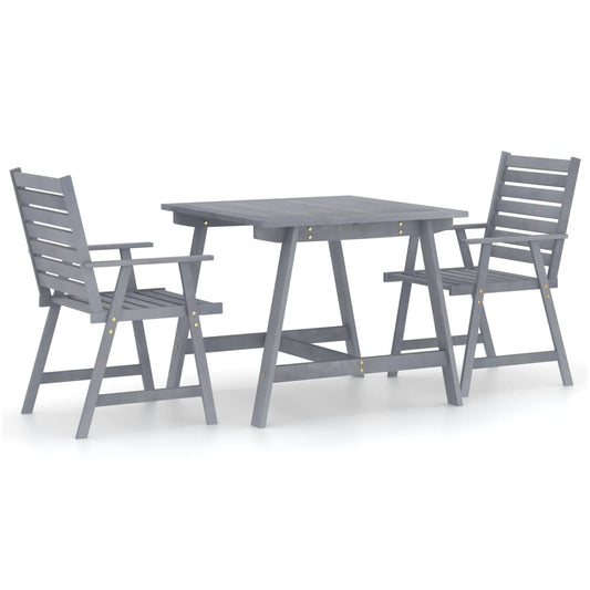 3 kom. Vrtna blagovaonska grupa sivo puno drvo akacije