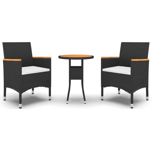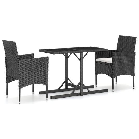 Rasprodano3-tlg. Garten-Essgruppe Poly Rattan Schwarz