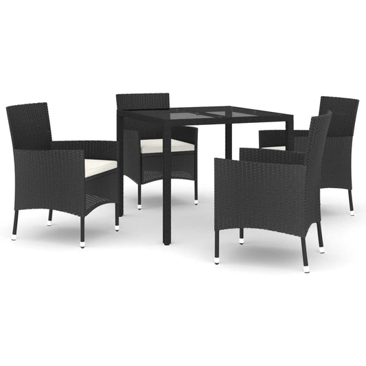 5-tlg. Garten-Essgruppe mit Kissen Schwarz Poly Rattan