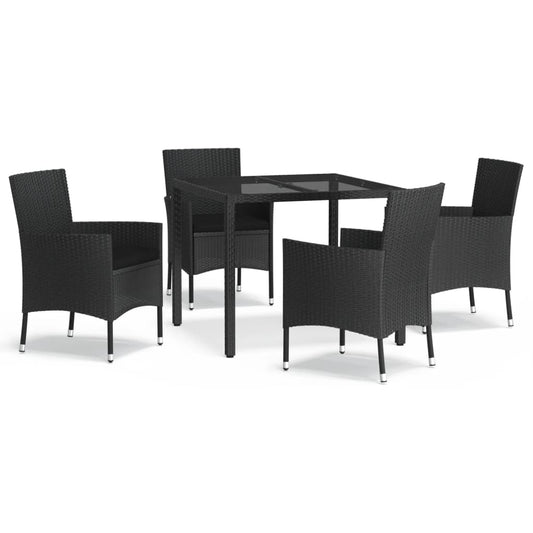 5-tlg. Garten-Essgruppe mit Kissen Schwarz Poly Rattan