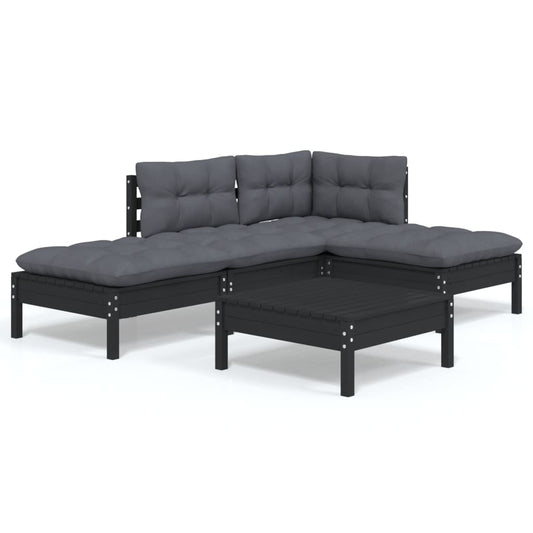 5-tlg. Garten-Lounge-Set mit Kissen Schwarz Kiefernholz