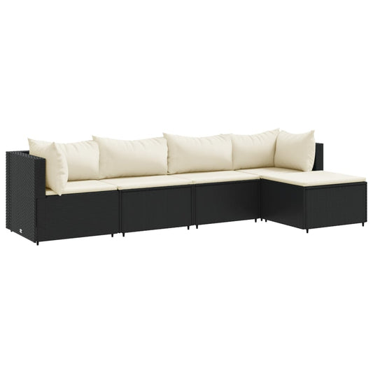 5-tlg. Garten-Lounge-Set mit Kissen Schwarz Poly Rattan