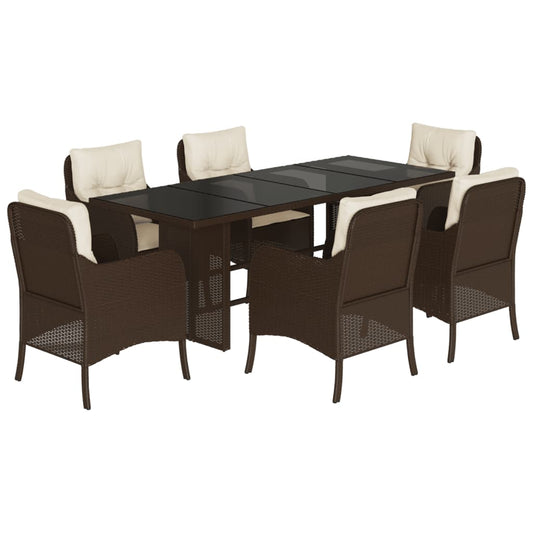 7-tlg. Garten-Essgruppe mit Kissen Braun Poly Rattan