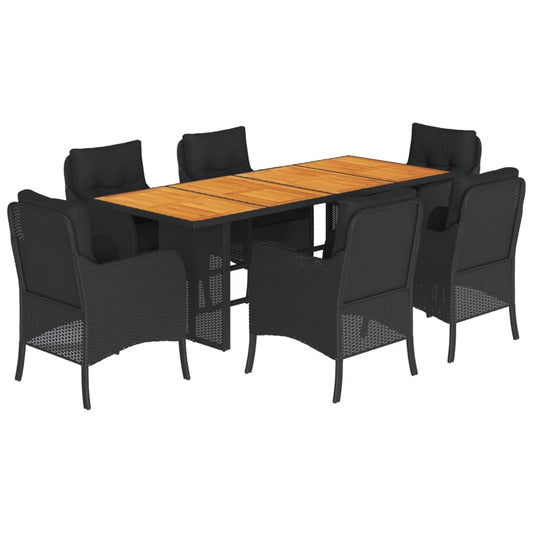 7-tlg. Garten-Essgruppe mit Kissen Schwarz Poly Rattan