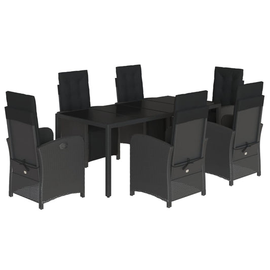 7-tlg. Garten-Essgruppe mit Kissen Schwarz Poly Rattan