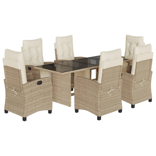 7-tlg. Garten-Essgruppe mit Kissen Beigemischung Poly Rattan