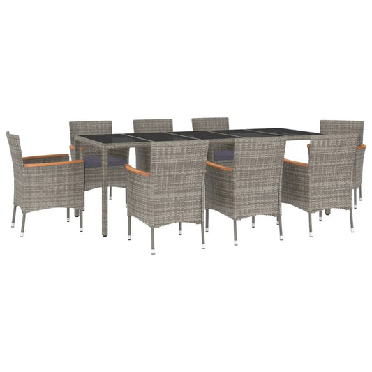 9-tlg. Garten-Essgruppe mit Kissen Grau Poly Rattan