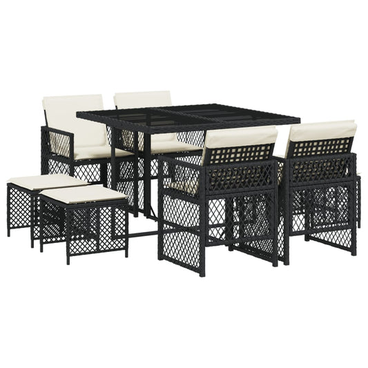 9-tlg. Garten-Essgruppe mit Kissen Schwarz Poly Rattan