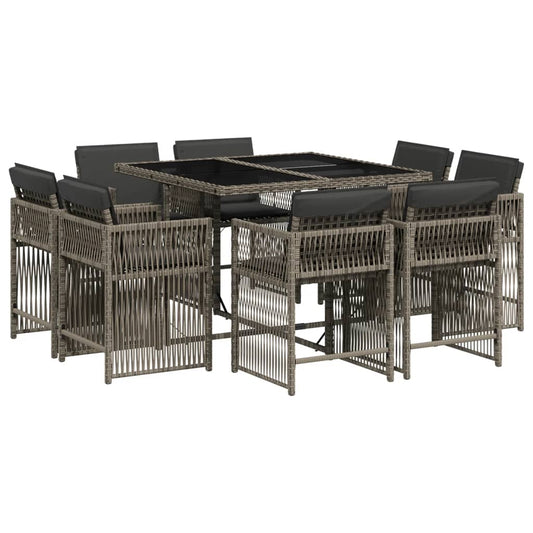 9-tlg. Garten-Essgruppe mit Kissen Grau Poly Rattan