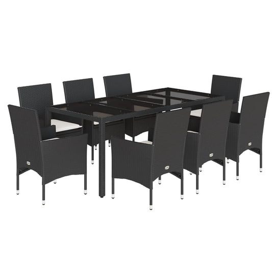 9-tlg. Garten-Essgruppe mit Kissen Schwarz Poly Rattan und Glas