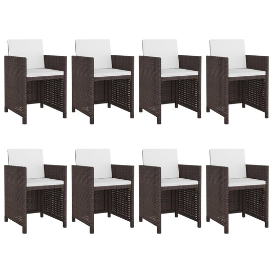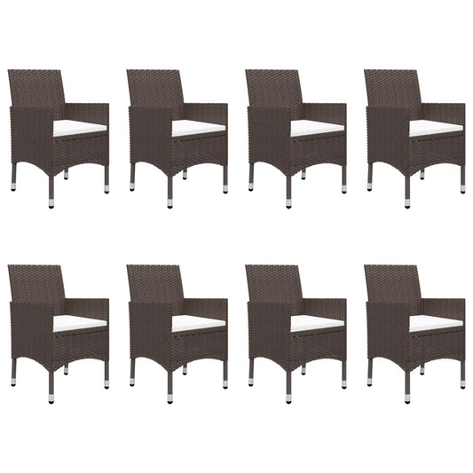 9-tlg. Garten-Essgruppe mit Kissen Braun Poly Rattan