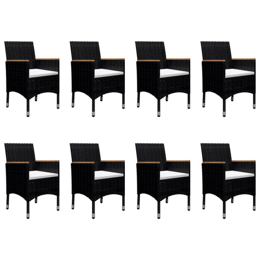 9-tlg. Garten-Essgruppe mit Kissen Poly Rattan Schwarz