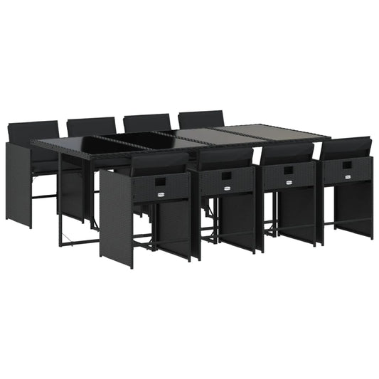 9-tlg. Garten-Essgruppe mit Kissen Schwarz Poly Rattan