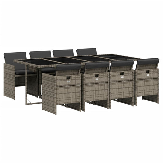 9-tlg. Garten-Essgruppe mit Kissen Grau Poly Rattan