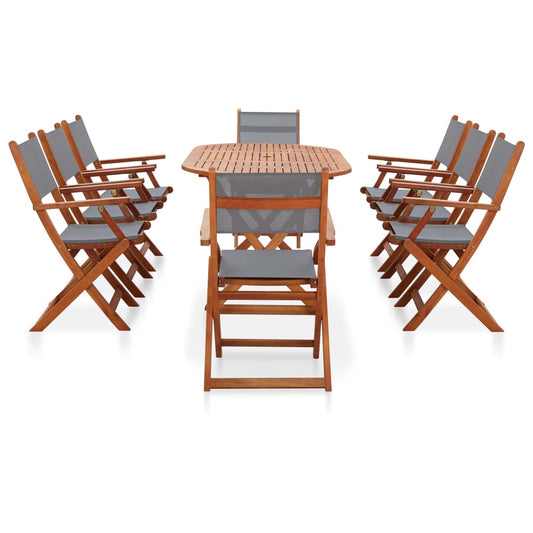 9 kom. Vrtna blagovaonska grupa eukaliptus puno drvo i tekstil