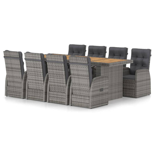 9-tlg. Garten-Essgruppe mit Kissen Grau Poly Rattan Akazie