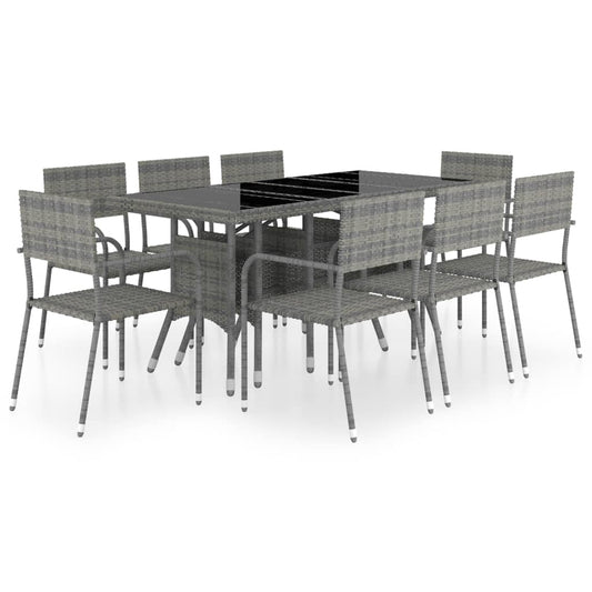 9-tlg. Garten-Essgruppe Poly Rattan Anthrazit und Grau
