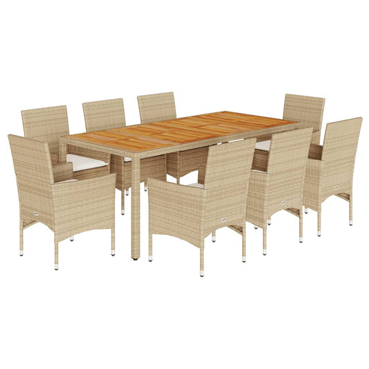 9-tlg. Garten-Essgruppe mit Kissen Beige Poly Rattan Akazie