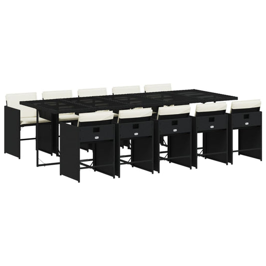 11-tlg. Garten-Essgruppe mit Kissen Schwarz Poly Rattan