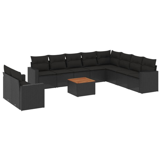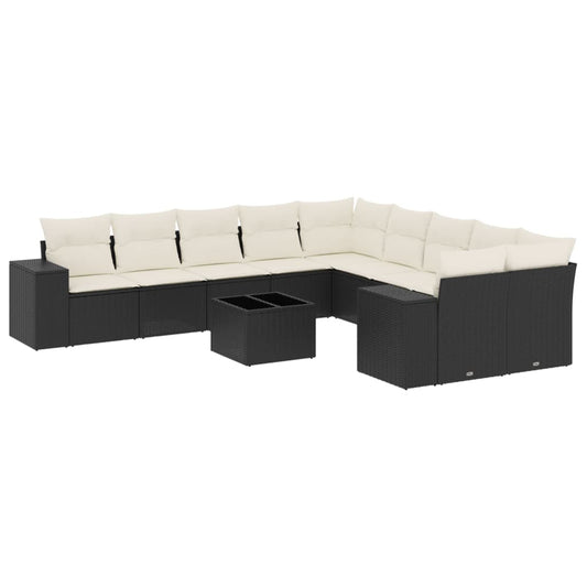 11-tlg. Garten-Sofagarnitur mit Kissen Schwarz Poly Rattan
