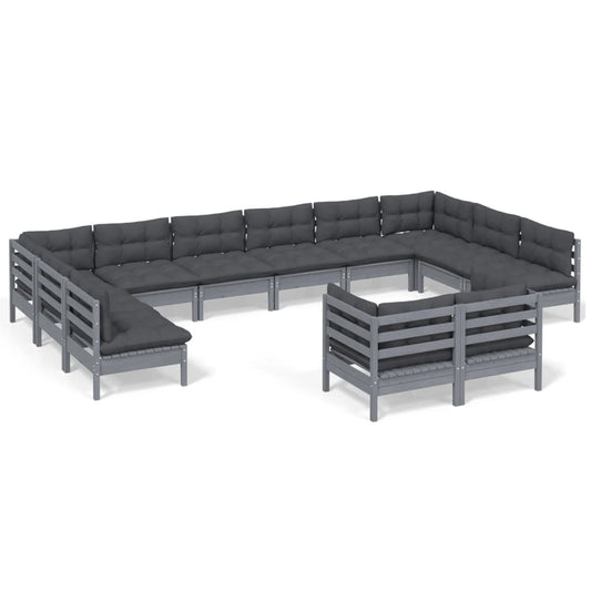 12-tlg. Garten-Lounge-Set mit Kissen Grau Kiefer Massivholz