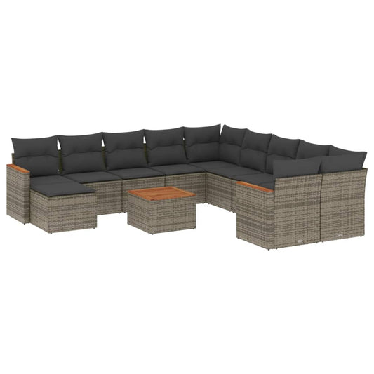 12-tlg. Garten-Sofagarnitur mit Kissen Grau Poly Rattan