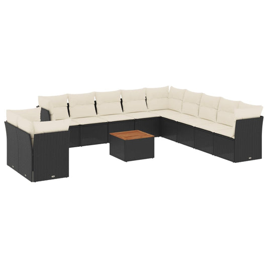 12-tlg. Garten-Sofagarnitur mit Kissen Schwarz Poly Rattan