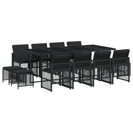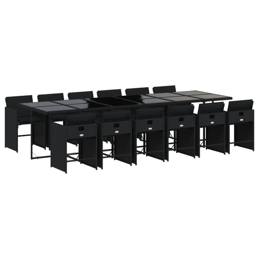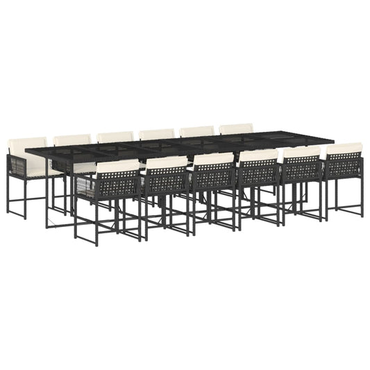 13-tlg. Garten-Essgruppe mit Kissen Schwarz Poly Rattan