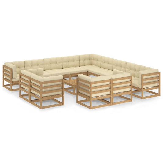 14-tlg. Garten-Lounge-Set mit Kissen Massivholz Kiefer