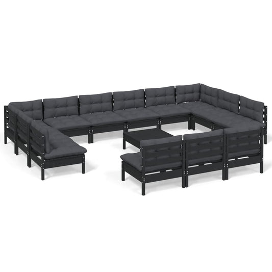 14-tlg. Garten-Lounge-Set mit Kissen Schwarz Kiefernholz