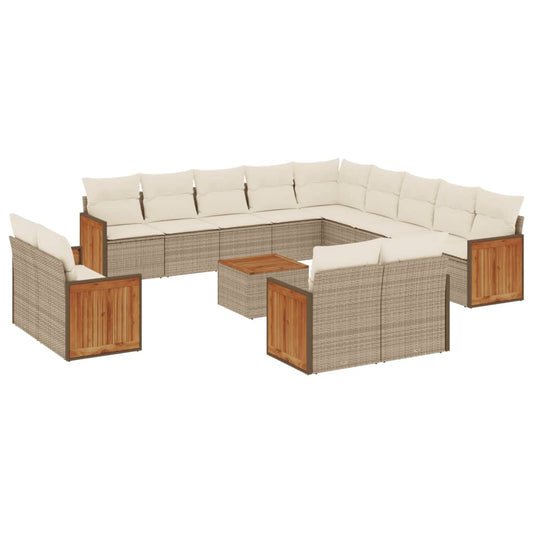 14-tlg. Garten-Sofagarnitur mit Kissen Beige Poly Rattan