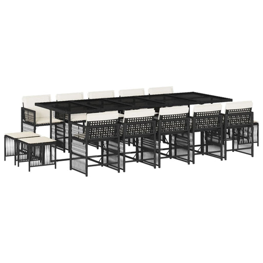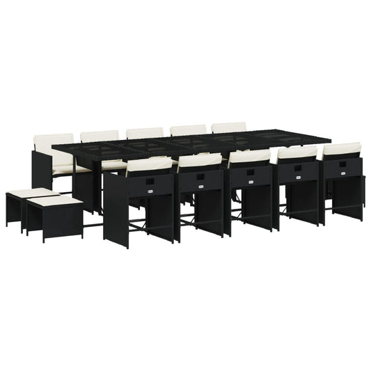 15-tlg. Garten-Essgruppe mit Kissen Schwarz Poly Rattan