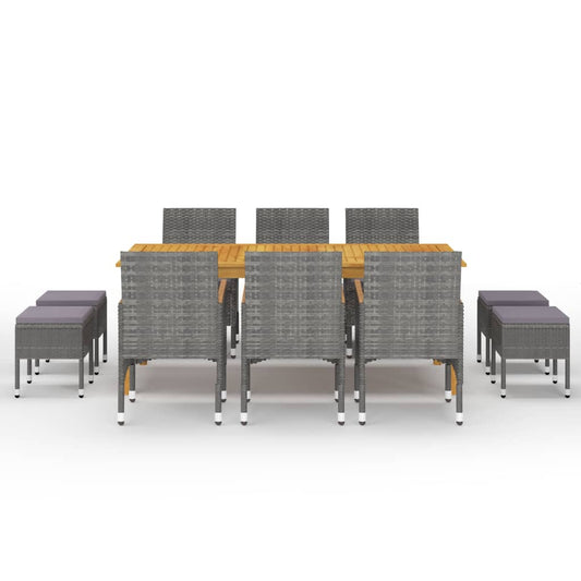 11 kom. Vrtna blagovaonska grupa s jastucima poliratan sive boje