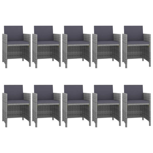 11-tlg. Garten-Essgruppe mit Auflagen Poly Rattan Grau