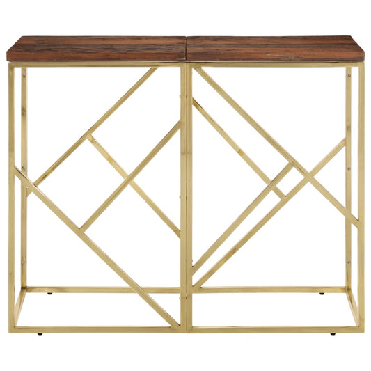Konsolentisch Golden Edelstahl und Massive Holzschwellen