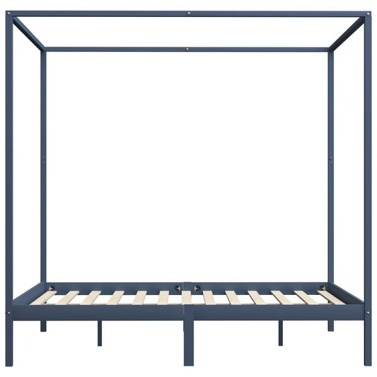 Himmelbett-Gestell Grau Massivholz Kiefer 180 x 200 cm