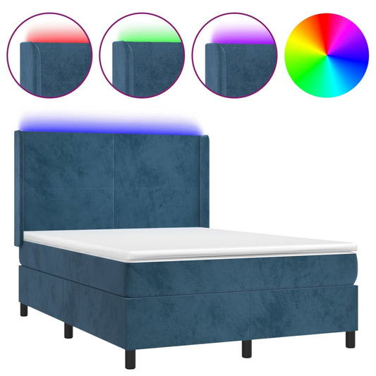 Boxspringbett mit Matratze & LED Dunkelblau 140x200 cm Samt