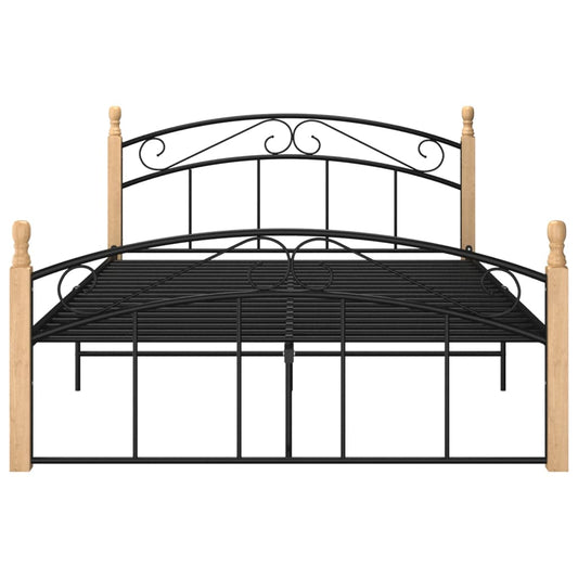 Bettgestell Schwarz Metall und Massivholz Eiche 140x200 cm