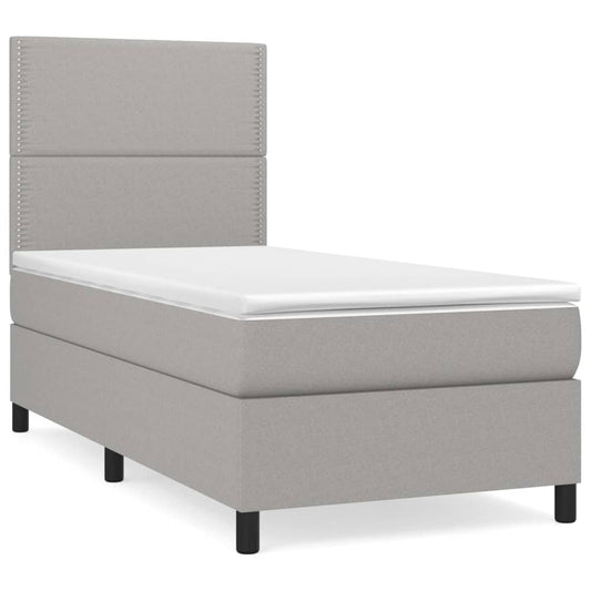 Boxspringbett mit Matratze Hellgrau 90x200 cm Stoff