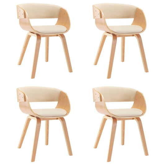 Esszimmerstühle 4 Stk. Cremeweiß Kunstleder und Bugholz