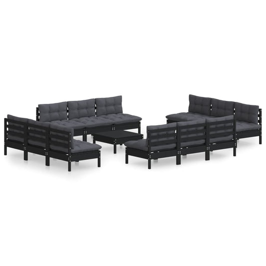 13 kom. Vrtna garnitura za sjedenje s jastucima od antracit borovine