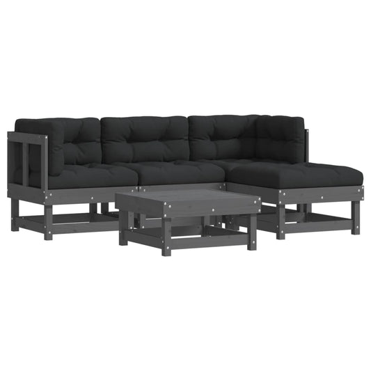 5-tlg. Garten-Lounge-Set mit Kissen Grau Massivholz