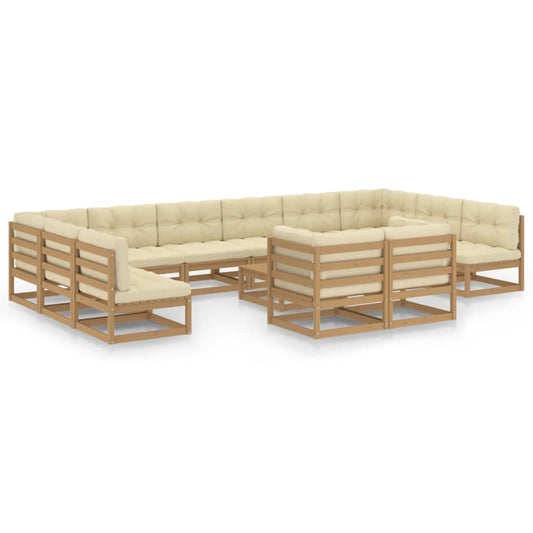 13 kom. Vrtna garnitura za sjedenje s jastucima med smeđe puno drvo