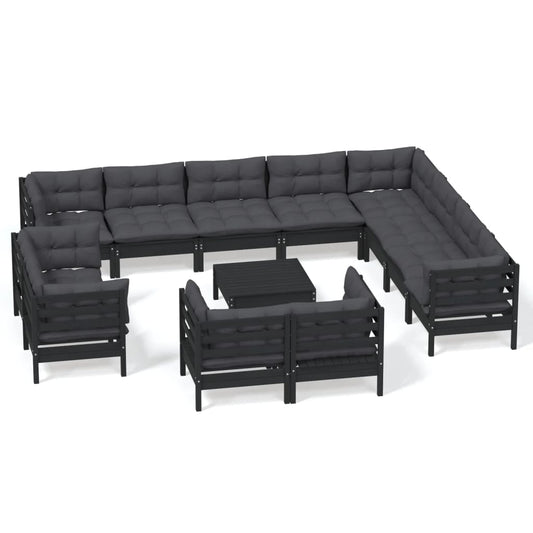 13 kom. Vrtna garnitura za sjedenje s jastucima od punog crnog bora